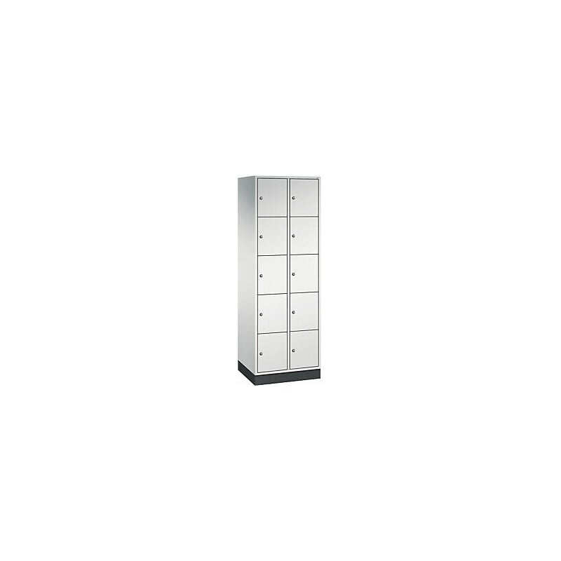Armadietto a scomparti in acciaio INTRO, altezza scomparto 345 mm, largh. x prof. 620 x 500 mm, 10 scomparti, corpo grigio chiaro, ante grigio chiaro. Fornitura = montato. Altezza = 1950 mm. Profondità = 500 mm. Larghezza = 620 mm. Colore corpo = grigio chiaro RAL 7035. Colore porta = grigio chiaro RAL 7035. Serratura = serratura a cilindro differenziata. Numero scomparti in larghezza = 2 pz. Numero scomparti = 10 pz. Larghezza scomparti = 300 mm. Materiale = lamiera d'acciaio. Altezza armadietto = 1950 mm. Dotazione interna = senza dotazione interna. Larghezza interna = 260 mm. Altezza interna = 345 mm. Profondità interna = 460 mm. Tipo di porta = anta a battente. Numero chiavi = 2 pz. Altezza scomparti = 345 mm. Larghezza ripiani = 300 mm. Profondità ripiani = 500 mm. Altezza zoccolo = 100 mm. Struttura = con saldatura. Superficie = con verniciatura a forno. Ante a parete doppia per maggiore stabilità. Struttura in acciaio di lunga durata. Serratura a cilindro con 2 chiavi. Fori di