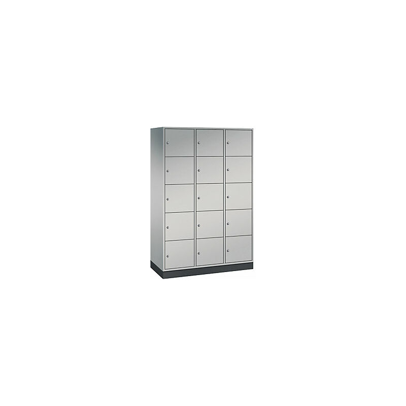 Armadietto a scomparti in acciaio INTRO, altezza scomparto 345 mm, largh. x prof. 1220 x 500 mm, 15 scomparti, corpo alluminio brillante, ante alluminio brillante. Fornitura = montato. Altezza = 1950 mm. Profondità = 500 mm. Larghezza = 1220 mm. Colore corpo = alluminio brillante RAL 9006. Colore porta = alluminio brillante RAL 9006. Serratura = serratura a cilindro differenziata. Numero scomparti in larghezza = 3 pz. Numero scomparti = 15 pz. Larghezza scomparti = 300 mm. Materiale = lamiera d'acciaio. Altezza armadietto = 1950 mm. Dotazione interna = senza dotazione interna. Larghezza interna = 360 mm. Altezza interna = 345 mm. Profondità interna = 460 mm. Tipo di porta = anta a battente. Numero chiavi = 2 pz. Altezza scomparti = 345 mm. Larghezza ripiani = 360 mm. Profondità ripiani = 500 mm. Altezza zoccolo = 100 mm. Struttura = con saldatura. Superficie = con verniciatura a forno. Struttura in acciaio di lunga durata. Serratura a cilindro con 2 chiavi. Fori di aerazione sulla