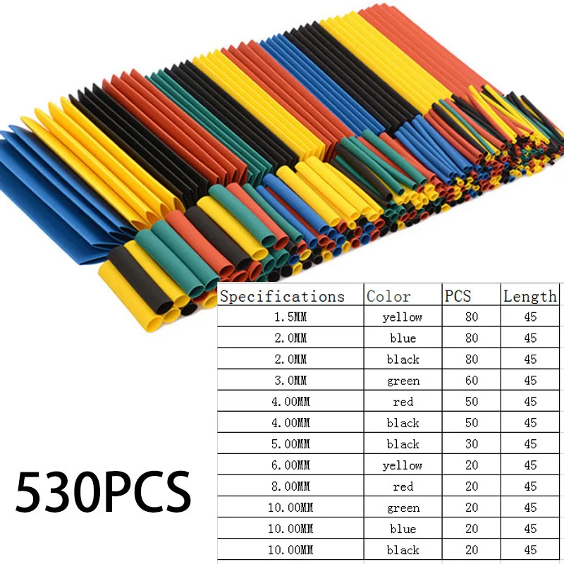 530pcs Heat Shrink Tube, Polyolefin Tube Cable Kit,Insulated Sleeving Tubing Wrap Wire Cable Sleeve