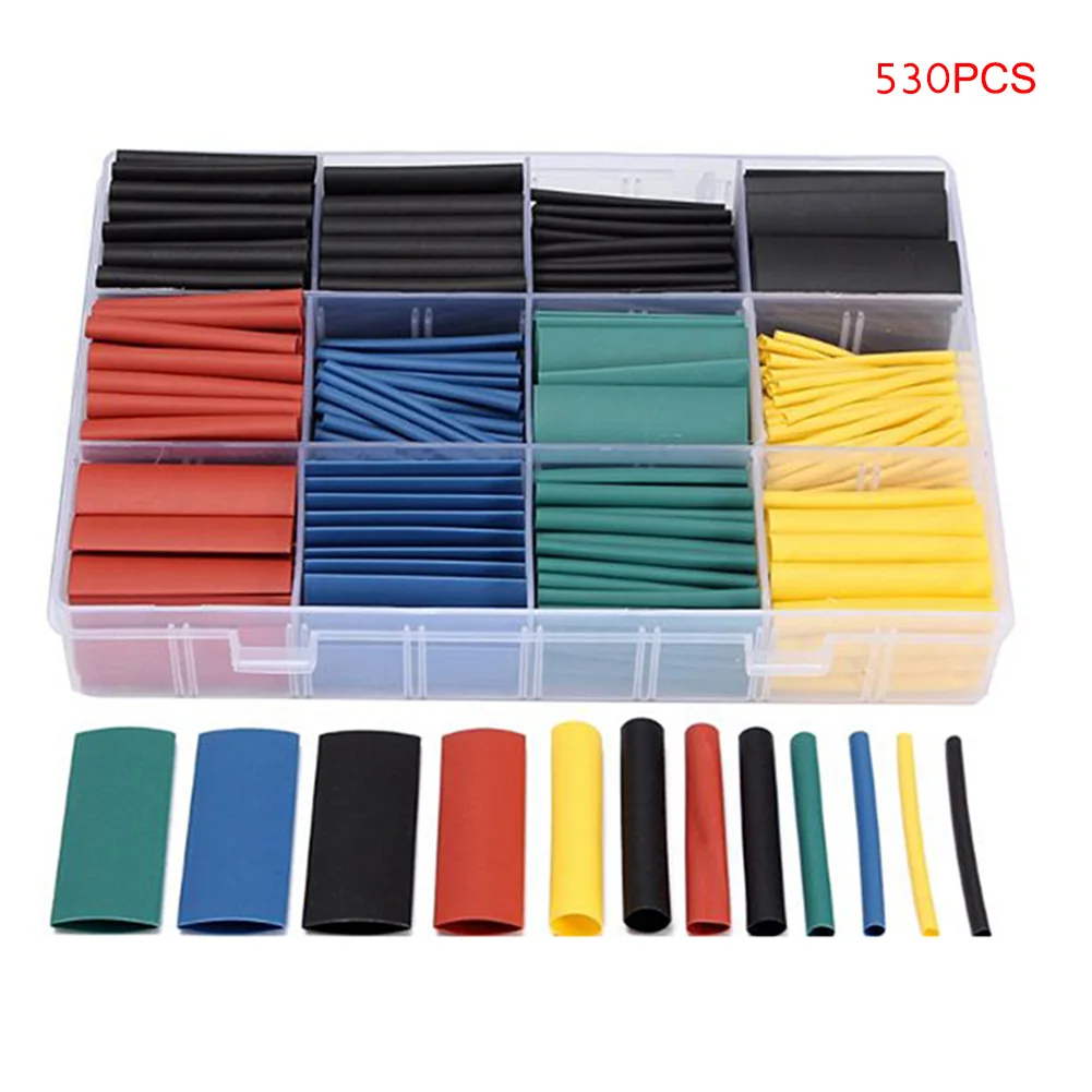 530Pcs/Box Heat Shrink Tubing Tube Insulation Shrinkable Sleeve Kit Assortment Electronic Polyolefin 2:1 Wrap Cable Wire HANW88