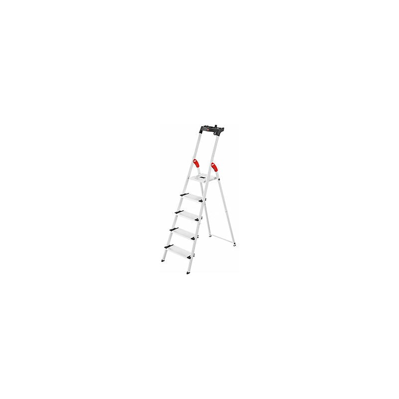 Scala a libro in alluminio ComfortLine L80, portata 150 kg, 5 gradini. Fornitura = montato. Tipo di prodotto = scale a libro con gradini, salita su un lato. Altezza di lavoro = 3070 mm. Salita = su un lato. Versione da salita = gradini. N. gradini, piattaforma inclusa = 5 pz. Materiale telaio = alluminio. Materiale gradini = alluminio con rivestimento antisdrucciolo. Profondità gradini = 130 mm. Altezza piattaforma = 1070 mm. Peso = 5.3 kg. Larghezza piattaforma = 245 mm. Profondità piattaforma = 265 mm. Caratteristiche = pieghevole. Portata = 150 kg. Caratteristiche scala = con vaschetta. Ampi gradini per una salita sicura. Lavorazione stabile e compatta. Vaschetta portamateriale multifunzione. Gradini in alluminio XXL con scanalatura antiscivolo e superficie d'appoggio molto profonda. Vaschette portamateriale multifunzione per attrezzi, barattoli di colore, minuteria. Cinghia per secchio con fibbia a scatto per un fissaggio sicuro di secchi, aspirapolvere o avvolgicavi. Per l'uso
