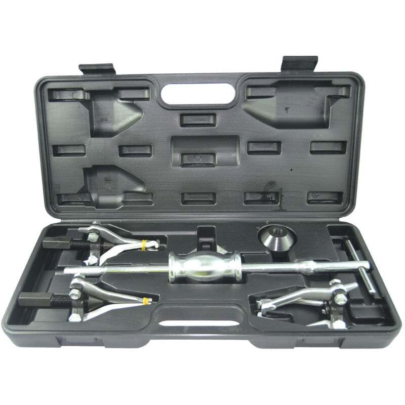 Materiale: acciaio Estrazione esterna: da 40 a 80mm Estrazione interna: da 50 a 150mm Include: - Estrattore tripla griffa esterna - Tripla griffa interna. per cuscinetto o estrazione cuscinetto - 1 estrattore profondo - 1 raccordo a vite