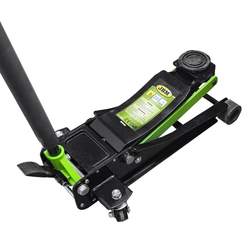 Portata: 3000kg. Altezza minima: 100 mm. Altezza massima: 533 mm. Misure: 778*372*165MM. NO: 42,2 kg. GW: 45,0 kg. Dimensioni confezione: 860*400*210MM Caratteristiche: - Schiuma - Coppa con protezione in gomma - Ruote in nylon - Leva di sollevamento