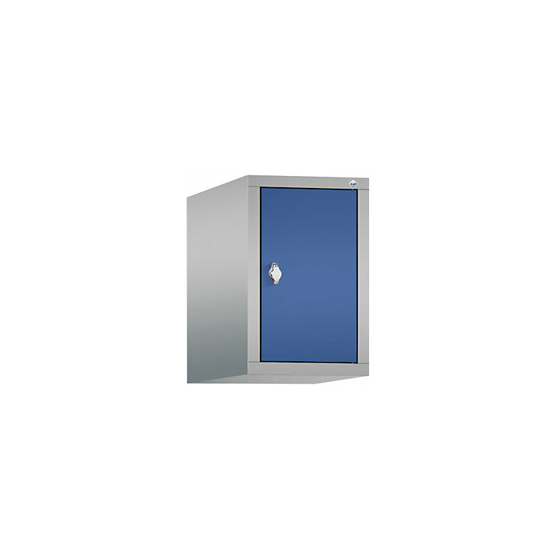 Armadietto sovrapponibile CLASSIC, 1 vano, larghezza vano 300 mm, alluminio brillante / blu genziana. Fornitura = montato. Altezza = 500 mm. Profondità = 500 mm. Larghezza = 320 mm. Colore corpo = alluminio brillante RAL 9006. Colore porta = blu genziana RAL 5010. Serratura = chiavistello girevole predisposto per lucchetto. Numero scomparti in larghezza = 1 pz. Numero scomparti = 1 pz. Larghezza scomparti = 300 mm. Materiale = lamiera d'acciaio. Altezza armadietto = 500 mm. Dotazione interna = senza dotazione interna. Larghezza interna = 230 mm. Altezza interna = 430 mm. Profondità interna = 465 mm. Tipo di porta = anta a battente. Altezza scomparti = 500 mm. Larghezza ripiani = 300 mm. Profondità ripiani = 500 mm. Struttura = con saldatura. Superficie = verniciatura. Struttura in acciaio di lunga durata. Angolo di apertura anta 110°. Verniciatura a forno di qualità per elevata resistenza ai raggi UV e alla corrosione. Ammortizzatore battuta anta di serie. Chiavistello girevole per