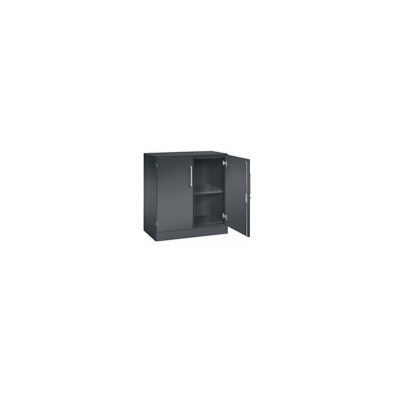 Armadio con ante a battente ASISTO, altezza 897 mm, larghezza 800 mm, 1 ripiano, grigio nerastro/grigio nerastro. Fornitura = montato. Larghezza = 800 mm. Altezza = 897 mm. Profondità = 435 mm. Colore corpo = grigio nerastro RAL 7021. Materiale = lamiera d'acciaio. Tipo di prodotto = armadi con ante a battente. Tipo di porta = anta a battente. Colore porta = grigio nerastro RAL 7021. Numero ante = 2 pz. Numero ripiani = 1 pz. Materiale ripiani = acciaio. Colore ripiani = grigio nerastro. Portata per ripiano = 70 kg. Caratteristiche = con serratura. Serratura = serratura a cilindro. Numero file raccoglitori = 2 pz. Dotazione interna = 1 ripiano. Passo di regolazione altezza ripiani = 15 mm. Altezza zoccolo = 90 mm. Angolo di apertura delle porte = 225 °. Spessore ripiani = 24 mm. Spessore del corpo = 0.88 mm. Spessore porta = 19 mm. Corpo in robusta costruzione d'acciaio con verniciatura a forno di alta qualità per un'elevata resistenza ai raggi UV. Design elegante con effetto