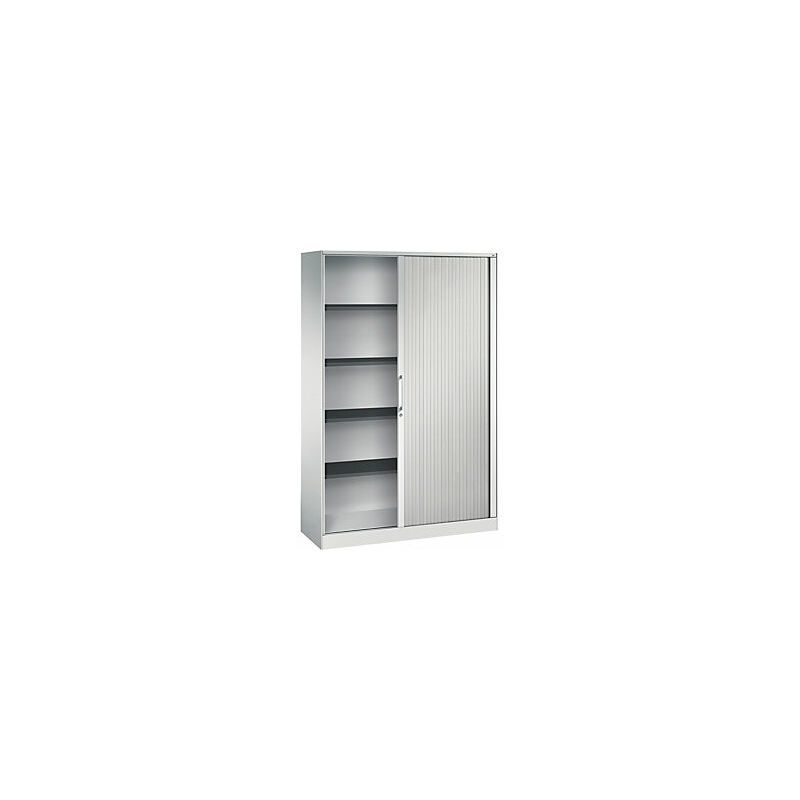 Armadio con serranda ASISTO, altezza 1980 mm, larghezza 1200 mm, grigio chiaro/grigio chiaro. Fornitura = montato. Altezza = 1980 mm. Larghezza = 1200 mm. Profondità = 435 mm. Colore corpo = grigio chiaro RAL 7035. Materiale corpo = lamiera d'acciaio, verniciata a polvere. Colore serranda = grigio chiaro RAL 7035. Caratteristiche = con serratura. Serratura = serratura a cilindro. Numero file raccoglitori = 5 pz. Materiale serranda = plastica. Dotazione interna = 4 ripiani. Numero ripiani = 4 pz. Portata per ripiano = 50 kg. Colore ripiani = grigio nerastro RAL 7021. Tipo di porta = serrande. Passo di regolazione altezza ripiani = 15 mm. Larghezza interna = 1095 mm. Altezza interna = 1865 mm. Profondità interna = 365 mm. Spessore ripiani = 24 mm. Spessore del corpo = 0.88 mm. Altezza zoccolo = 90 mm. Serrande scorrevoli e silenziose su guide leggere. Alta flessibilità grazie alla dotazione interna regolabile in altezza con passo di 15 mm. Serratura con blocco a gancio con nucleo