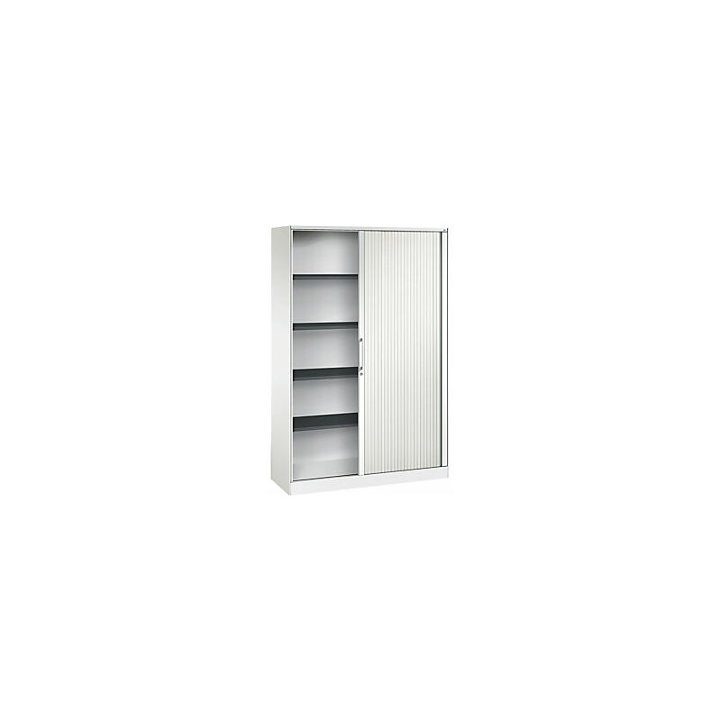 Armadio con serranda ASISTO, altezza 1980 mm, larghezza 1200 mm, bianco traffico/bianco traffico. Fornitura = montato. Altezza = 1980 mm. Larghezza = 1200 mm. Profondità = 435 mm. Colore corpo = bianco traffico RAL 9016. Materiale corpo = lamiera d'acciaio, verniciata a polvere. Colore serranda = bianco traffico RAL 9016. Caratteristiche = con serratura. Serratura = serratura a cilindro. Numero file raccoglitori = 5 pz. Materiale serranda = plastica. Dotazione interna = 4 ripiani. Numero ripiani = 4 pz. Portata per ripiano = 50 kg. Colore ripiani = grigio nerastro RAL 7021. Tipo di porta = serrande. Passo di regolazione altezza ripiani = 15 mm. Larghezza interna = 1095 mm. Altezza interna = 1865 mm. Profondità interna = 365 mm. Spessore ripiani = 24 mm. Spessore del corpo = 0.88 mm. Altezza zoccolo = 90 mm. Serrande scorrevoli e silenziose su guide leggere. Alta flessibilità grazie alla dotazione interna regolabile in altezza con passo di 15 mm. Serratura con blocco a gancio con nucleo