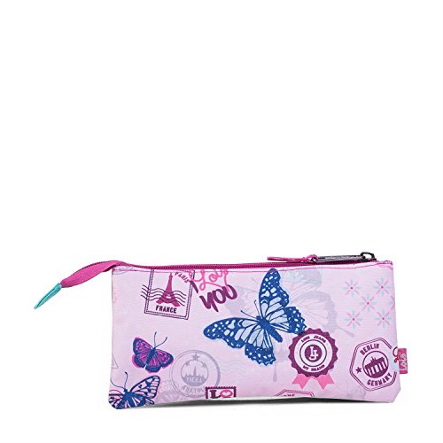 LOIS - 54111 Astuccio, triple. 3 taschi e 2 cernieri. Molto resistente. Poliestere. Disegno, Color Rosa
