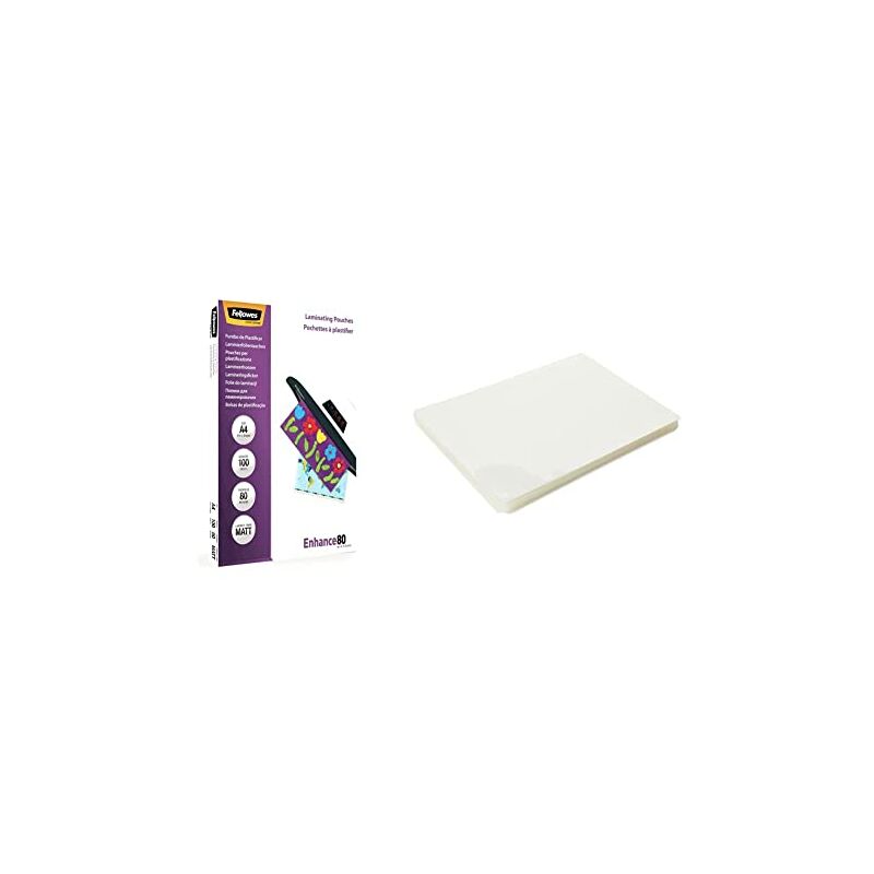 Fellowes 5452103 Pouches Opache Enhance80, Formato A4, 80 Micron, Confezione da 100 Pezzi & Apex Pouches per Plastificatrice, A4, 100 Pezzi 6003301 A4Size: A4;