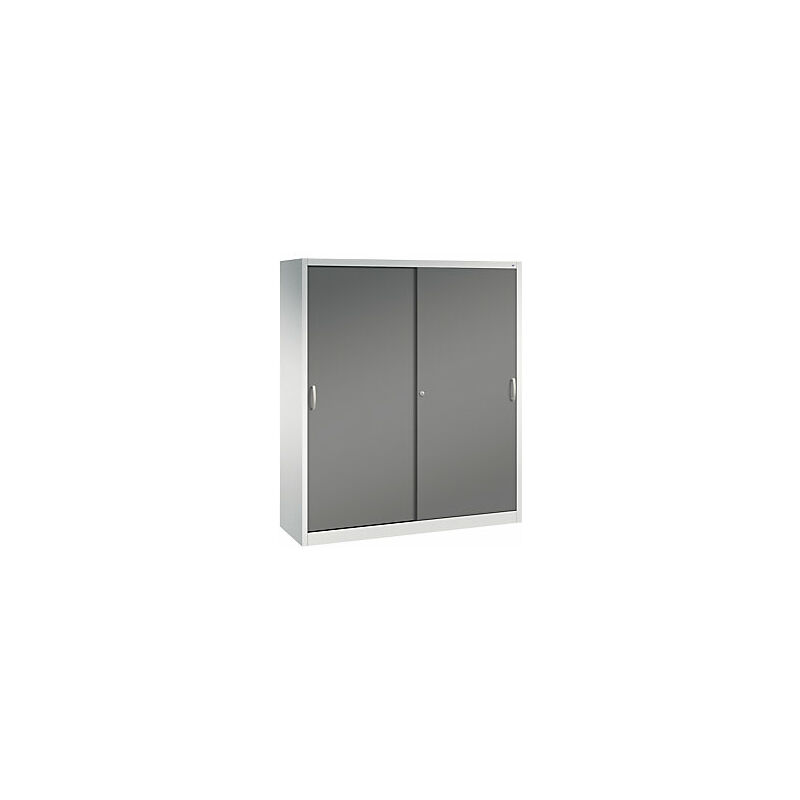 Armadio con ante scorrevoli ACURADO, 8 ripiani, alt. x largh. x prof. 1950 x 1600 x 500 mm, grigio chiaro / grigio vulcano. Fornitura = montato. Larghezza = 1600 mm. Altezza = 1950 mm. Profondità = 500 mm. Colore corpo = grigio chiaro RAL 7035. Materiale = acciaio, con verniciatura a forno. Tipo di prodotto = armadi con ante scorrevoli. Tipo di porta = porta scorrevole. Colore porta = grigio vulcano RDS 0005000. Numero ante = 2 pz. Numero ripiani = 2x4 pz. Materiale ripiani = acciaio, con verniciatura a forno. Colore ripiani = grigio chiaro RAL 7035. Portata per ripiano = 70 kg. Caratteristiche = con serratura. Serratura = serratura a cilindro girevole a pressione, serratura a cilindro a leva. Numero file raccoglitori = 5 pz. Dotazione interna = 8 ripiani, parete divisoria. Passo di regolazione altezza ripiani = 15 mm. Altezza zoccolo = 100 mm. Spessore ripiani = 24 mm. Spessore del corpo = 0.88 mm. Spessore porta = 19 mm. Ante scorrevoli in acciaio su rotelle in speciali guide di