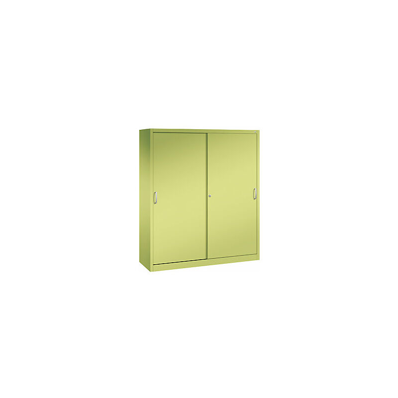 Armadio con ante scorrevoli ACURADO, 8 ripiani, alt. x largh. x prof. 1950 x 1600 x 500 mm, verdino. Fornitura = montato. Larghezza = 1600 mm. Altezza = 1950 mm. Profondità = 500 mm. Colore corpo = verde azzurrognolo RDS 1108060. Materiale = acciaio, con verniciatura a forno. Tipo di prodotto = armadi con ante scorrevoli. Tipo di porta = porta scorrevole. Colore porta = verde azzurrognolo RDS 1108060. Numero ante = 2 pz. Numero ripiani = 2x4 pz. Materiale ripiani = acciaio, con verniciatura a forno. Colore ripiani = grigio chiaro RAL 7035. Portata per ripiano = 70 kg. Caratteristiche = con serratura. Serratura = serratura a cilindro girevole a pressione, serratura a cilindro a leva. Numero file raccoglitori = 5 pz. Dotazione interna = 8 ripiani, parete divisoria. Passo di regolazione altezza ripiani = 15 mm. Altezza zoccolo = 100 mm. Spessore ripiani = 24 mm. Spessore del corpo = 0.88 mm. Spessore porta = 19 mm. Ante scorrevoli in acciaio su rotelle in speciali guide di scorrimento.