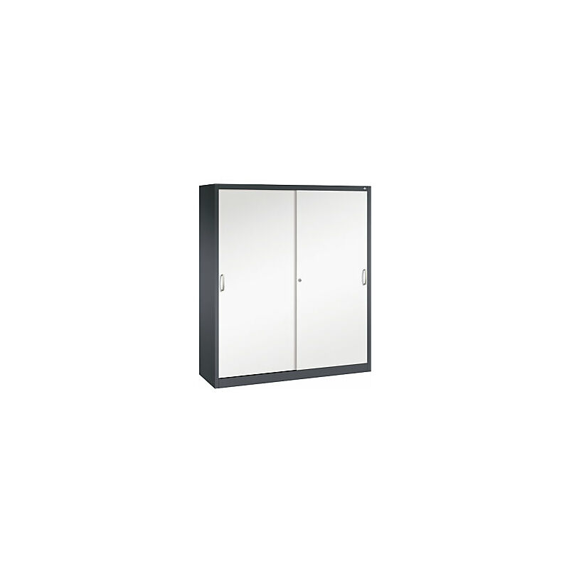 Armadio con ante scorrevoli ACURADO, 6 ripiani, 2 scomparti con serratura, alt. x largh. x prof. 1950 x 1600 x 500 mm, grigio nerastro / bianco traffico. Fornitura = montato. Larghezza = 1600 mm. Altezza = 1950 mm. Profondità = 500 mm. Colore corpo = grigio nerastro RAL 7021. Materiale = acciaio. Tipo di prodotto = armadi con ante scorrevoli. Tipo di porta = porta scorrevole. Colore porta = bianco traffico RAL 9016. Numero ante = 2 pz. Numero ripiani = 2x3 pz. Materiale ripiani = acciaio, con verniciatura a forno. Colore ripiani = grigio chiaro RAL 7035. Portata per ripiano = 70 kg. Caratteristiche = con serratura. Serratura = serratura a cilindro girevole a pressione, serratura a cilindro a leva. Numero file raccoglitori = 5 pz. Dotazione interna = 6 ripiani, 2 scomparti con serratura, parete divisoria centrale. Passo di regolazione altezza ripiani = 15 mm. Altezza zoccolo = 100 mm. Spessore ripiani = 24 mm. Spessore del corpo = 0.88 mm. Spessore porta = 19 mm. Ante scorrevoli in