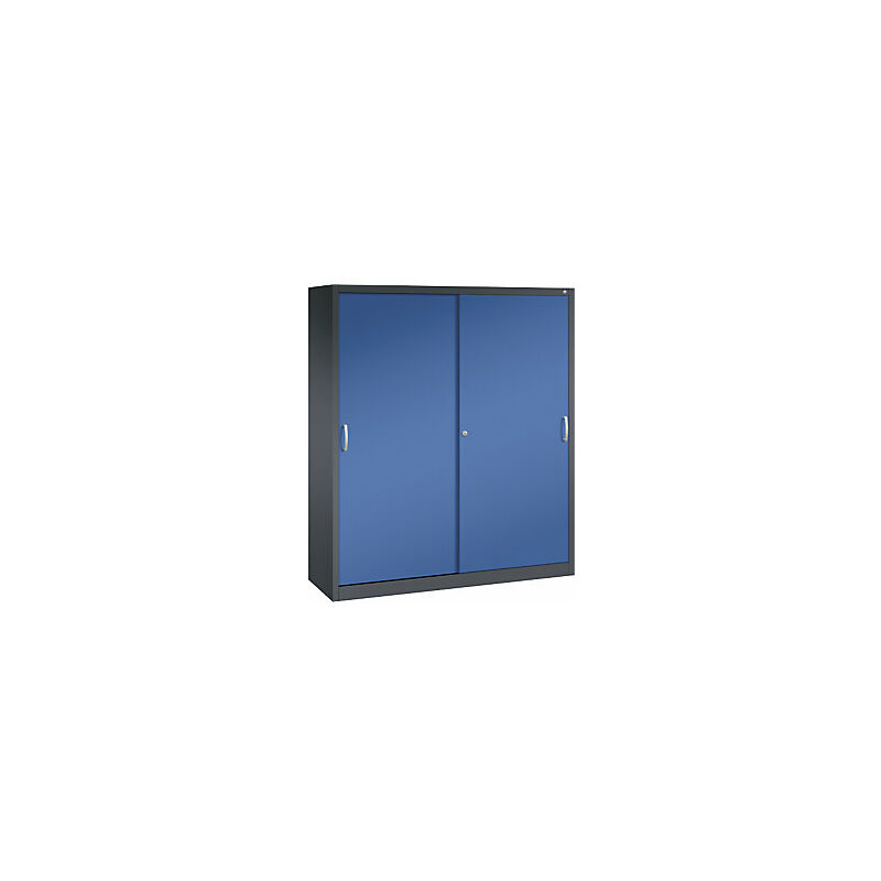 Armadio con ante scorrevoli ACURADO, 6 ripiani, 2 scomparti con serratura, alt. x largh. x prof. 1950 x 1600 x 500 mm, grigio nerastro / blu genziana. Fornitura = montato. Larghezza = 1600 mm. Altezza = 1950 mm. Profondità = 500 mm. Colore corpo = grigio nerastro RAL 7021. Materiale = acciaio. Tipo di prodotto = armadi con ante scorrevoli. Tipo di porta = porta scorrevole. Colore porta = blu genziana RAL 5010. Numero ante = 2 pz. Numero ripiani = 2x3 pz. Materiale ripiani = acciaio, con verniciatura a forno. Colore ripiani = grigio chiaro RAL 7035. Portata per ripiano = 70 kg. Caratteristiche = con serratura. Serratura = serratura a cilindro girevole a pressione, serratura a cilindro a leva. Numero file raccoglitori = 5 pz. Dotazione interna = 6 ripiani, 2 scomparti con serratura, parete divisoria centrale. Passo di regolazione altezza ripiani = 15 mm. Altezza zoccolo = 100 mm. Spessore ripiani = 24 mm. Spessore del corpo = 0.88 mm. Spessore porta = 19 mm. Ante scorrevoli in acciaio su