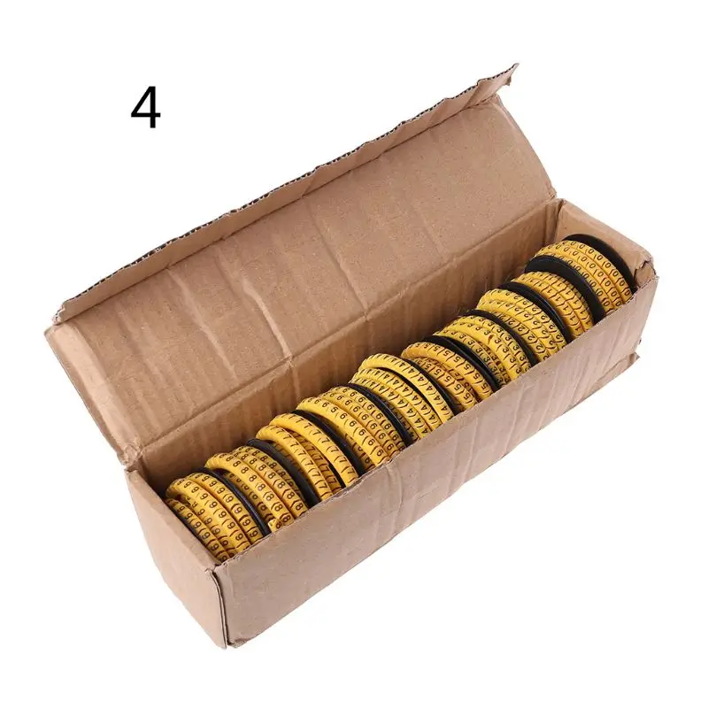 1Box 1.5/2.5/4/6/10mm Black and Yellow Square Wire Cable Marker Flexible PVC Cable Sleeve Number 0-9 Print