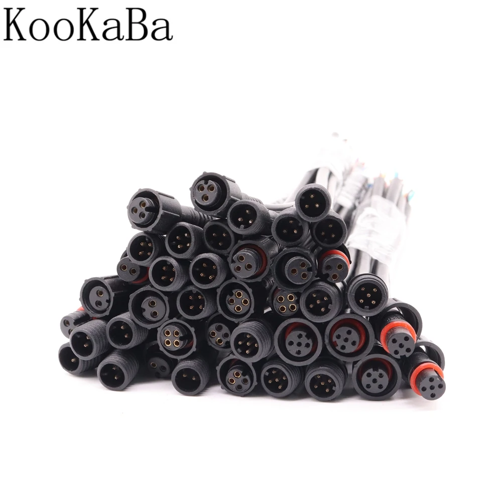 5~50Pairs Jack Male To Female 2Pin 3Pin 4Pin 5Pin LED Connector Waterproof IP68 BLACK Cable For LED Strips Light