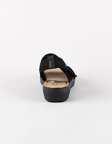 Fly Flot 55B85 FB Nero Sandali Donna Made in Italy Tomaia Tessuto Strappo Regolabile Zeppa 3,5 CM ANATOMICO ANTISHOCK AUTOMODELLANTE Antiscivolo Nero 41
