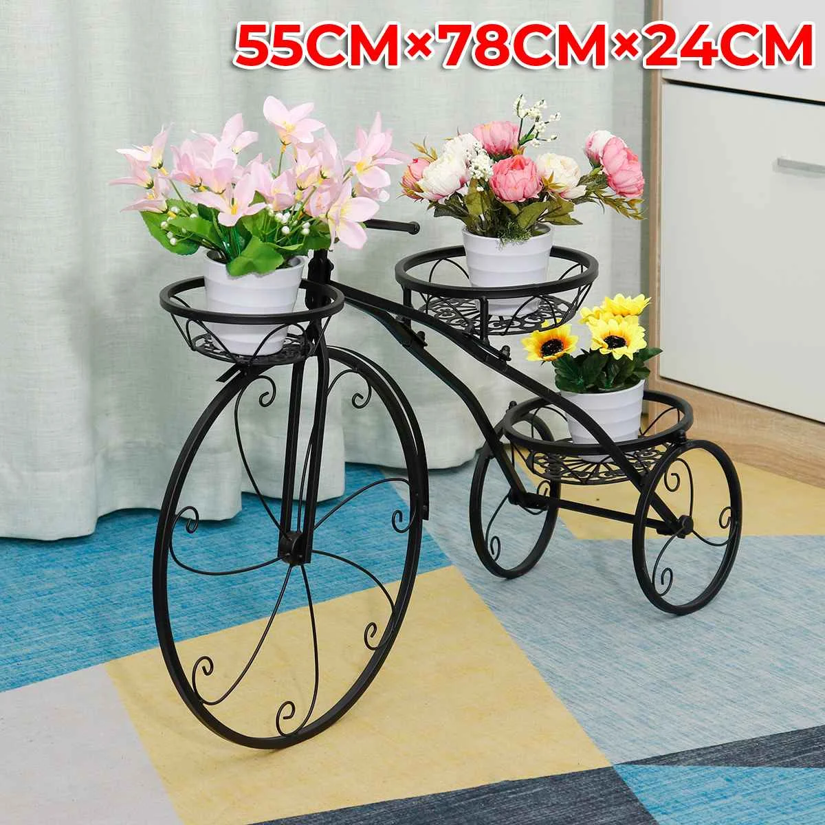 55x78x24cm Bicycle Metal Shelves Plants Stand Iron Plant Shelf Flower Rack Nordic Metal Floor Shelf Outdoor Garden Decors