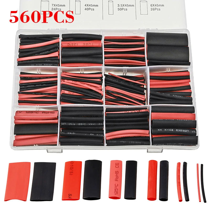 560pcs Heat Shrink Tubing Black & Red 2: 1 Ratio;