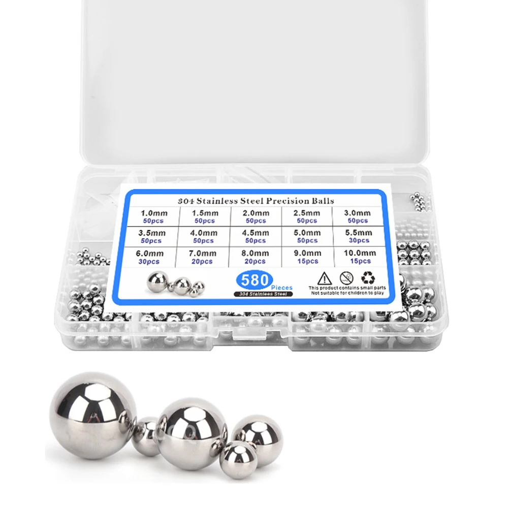580Pcs/Box 304 Stainles Steel Bearing Balls Combination Set Of 15 Specifications Polished And Fine-ground Solid Steel Balls