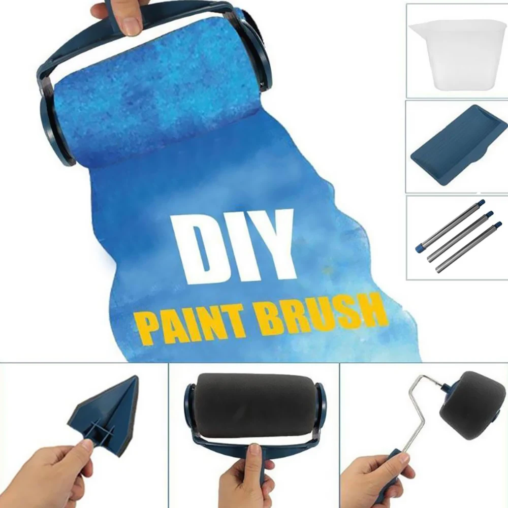 5/8pcs Paint Runner Roller Brush Handle Tool Flocked Edger Office Room Wall Painting Home Tool Roller Paint Brush Set