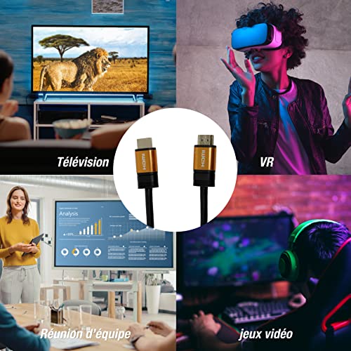 APM 590465 - Cavo HDMI 1,8 m 2.0 Ultra HD 4K Ethernet, cavo HDMI Lon, connettori maschio/maschio, accessori per TV e video, risoluzione eccezionale 4 x 2160p, eszione 3D, nero e oro