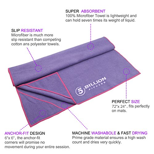 5BILLION Microfibra Asciugamano Yoga - 183cm x 61cm - Antiscivolo Asciugamano Yoga - Bikram Yoga Asciugamano, Ashtanga Yoga Asciugamano - Super Assorbente, Non Slittamento, Asciugatura Rapida (Viola)