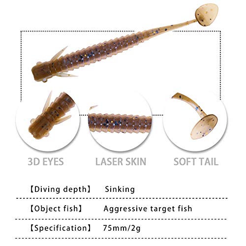 East Rain 7.5cm/2g cobite realistico Coda a T Vermi da pesca morbidi Esca in plastica morbida Pesca alla trota Bass Crappie