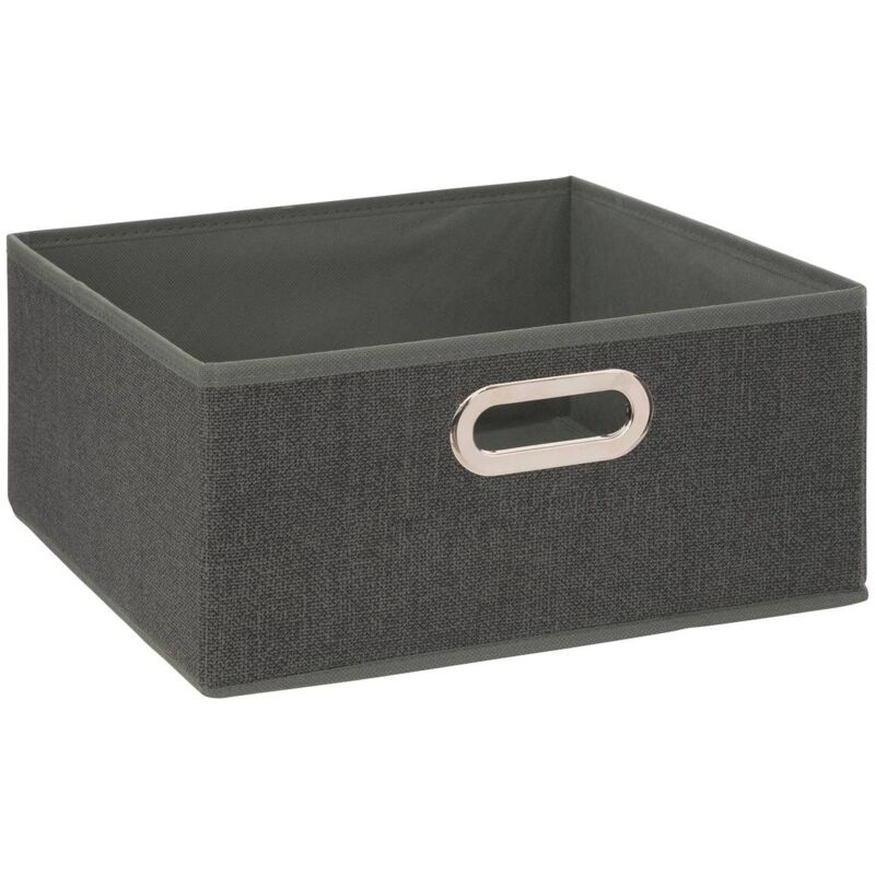 Lunghezza: 31.00 cm Larghezza: 31.00 cm Altezza: 15.30 cm Peso: 0.36 kg Scatola portaoggetti grigio scuro, cartone, polipropilene e metallo, dimensioni L. 31 x P. 31 x H. 15 cm