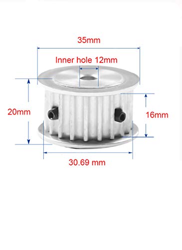 5M-20 denti, puleggia in alluminio, 5 m, cinghia dentata, ruota sincrona, puleggia dentata, foro 5 11 12 14 15 20 mm, opzionale/piatto su entrambi i lati (foro interno 12)