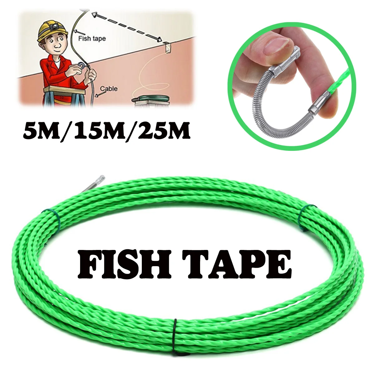 NEW 4mm 5m/15m/25m Fiberglass Cable Push Pullers Duct Rodder Fish Tape Wire POM Fish Draw Tape Electrical Cable Puller