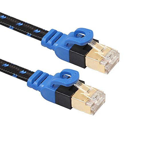 ♥ Cavo Ethernet Cat7 piatto extra forte con speciale design privo di grovigli e guaina in treccia di nylon intrecciata per una resistenza robusta a lungo termine.