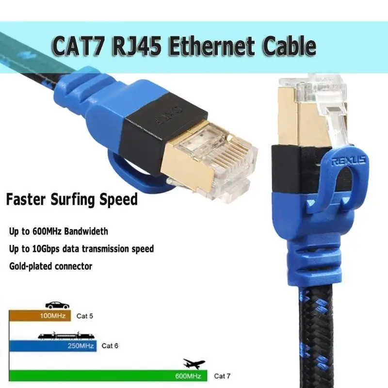 0.5m/1m/5m Braided Ethernet Cable RJ45 Cat7 Lan Wire Network Flat Cable Wire with Fibre Networking Cables for Router Switch