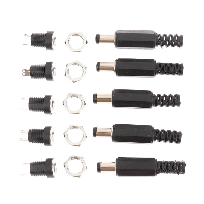 5Pair 5.5mm x 2.1mm DC Power Supply Plug Connector + Female Metal Panel Mount Socket Jack Plug DC Connectors Terminal Adapter