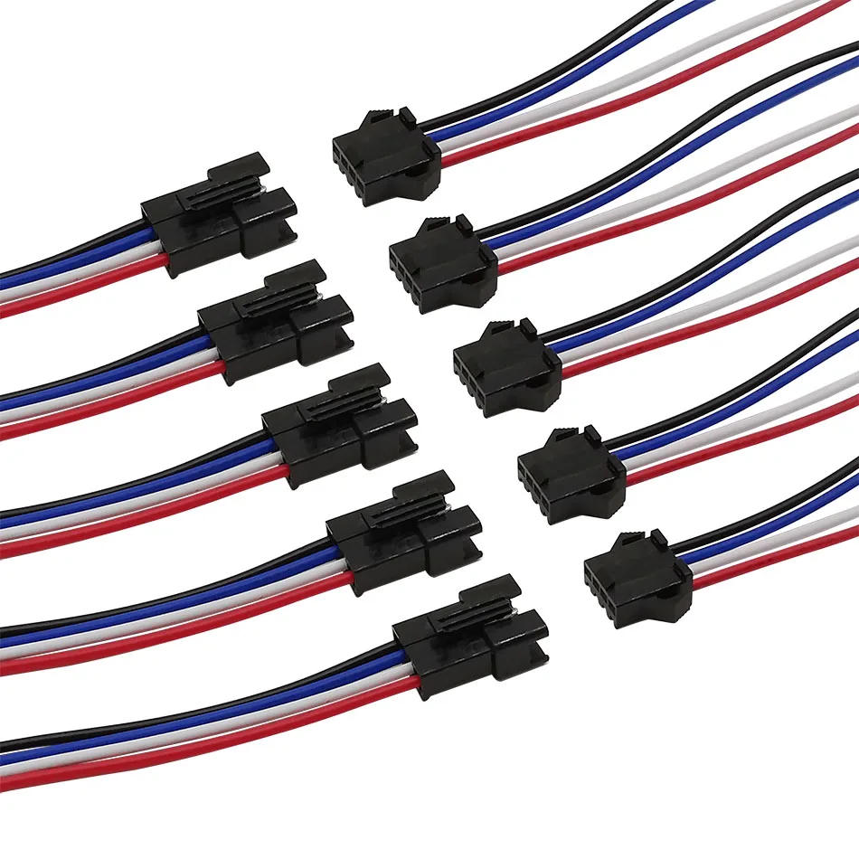 5Pairs JST SM 4 Pin 4P Plug Male to Female Jack Socket Wire Cable Pigtail Connector Length 100mm 150mm 200mm