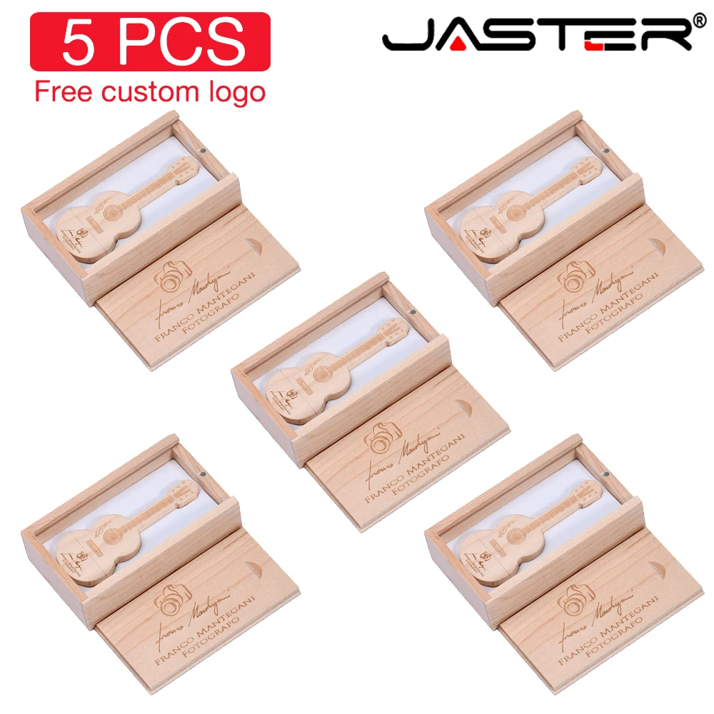 5PCS/LOT Free Custom logo Pen drive Guitar shaped USB flash drive Wooden box Memory Stick Music Pendrive 4G 16GB 32GB 64GB 128GB