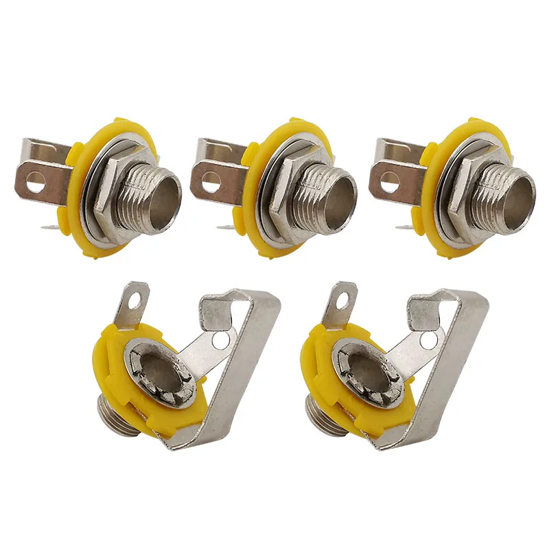 5Pcs/lot Metal 2 Pole Mono 6.35mm 1/4" Female Jack Audio Panel Socket NO Switch Solder Connector