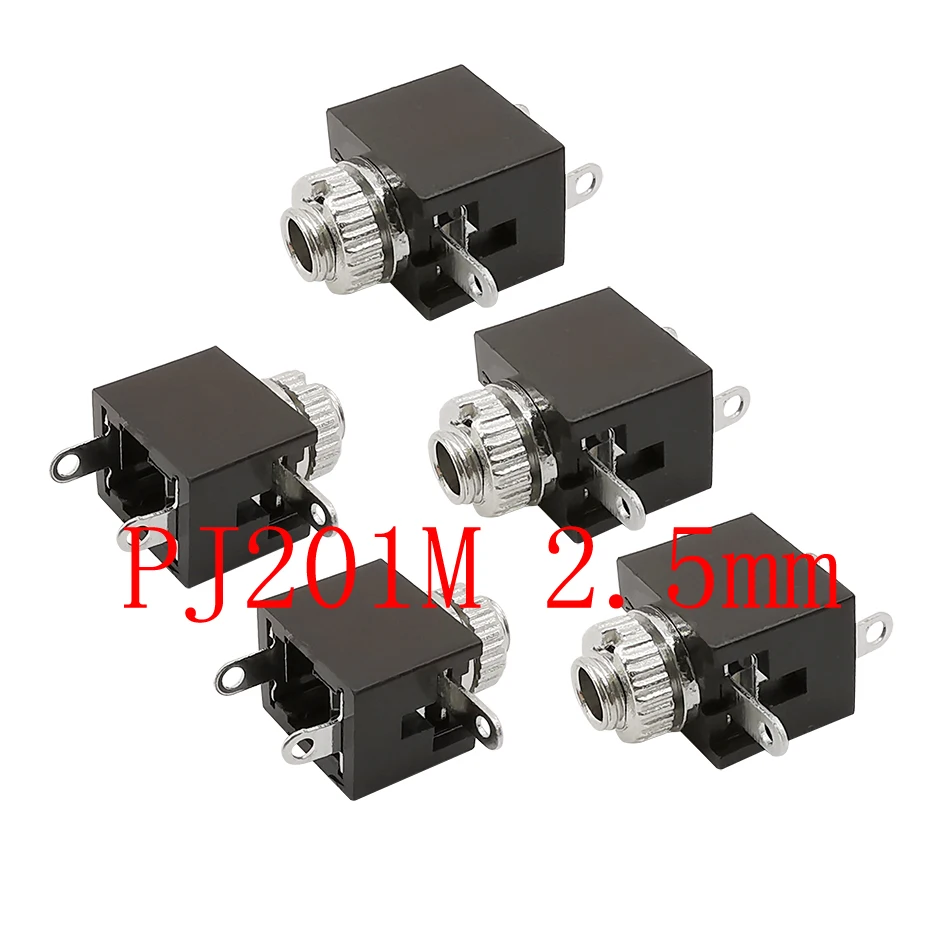 5Pcs/lot PJ-201M 2.5mm Female Audio Connector PJ201M 3 Pin DIP Headphone Jack Socket Mono Channel Connectors