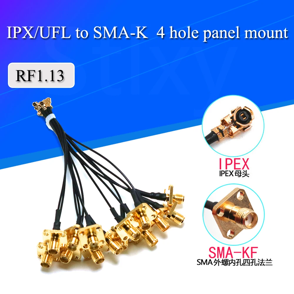 5PCSRF1.13 IPEX/IPX U.FL to SMA Female 4 Holes Flange Mounting Panel Connector Coax Pigtail Cable