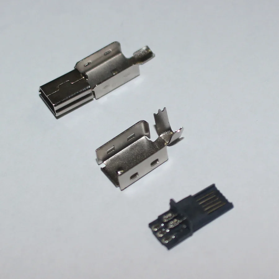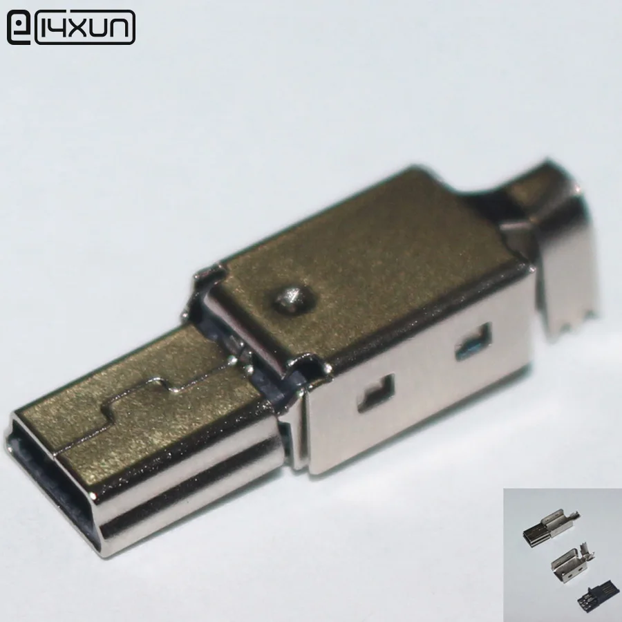 5sets Mini USB 5PIN Welding T Type Male Plug Connectors Charger 5P USB Tail Charging Socket 3 in 1 Metal Plug