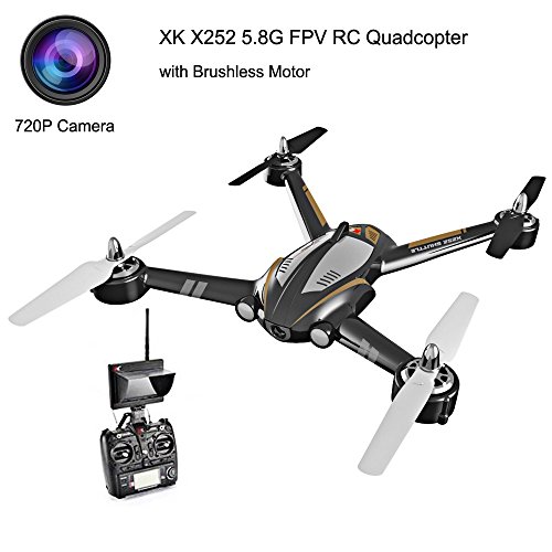 XK X252 5.8G FPV 7CH 6-Axis Gyro Drone RC Quadcopter RTF 1804 Brushless Motor, with 720P Camera -Black