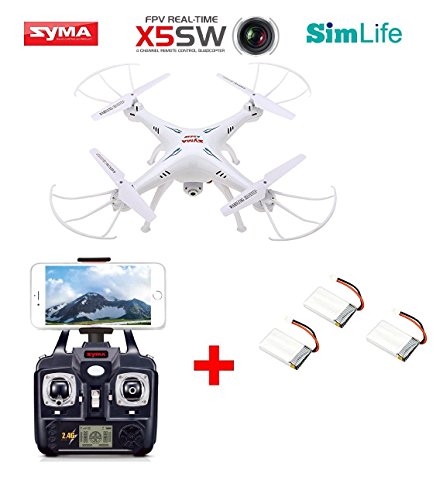 Syma X5SW FPV 2.4G 4CH 6-Axis Gyro RC Quadcopter Drone con HD macchina fotografica di Wifi + 2pcs Extra Batterie (bianco)
