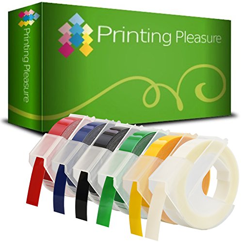 6-Pack Nero/Blu/Rosso/Verde/Giallo/Trasparente Etichette a rilievo in vinile autoadesive 3D Nastri Goffratura, rotoli da 9mm x 3m compatibili per DYMO Etichettatrici a rilievo Omega e Junior