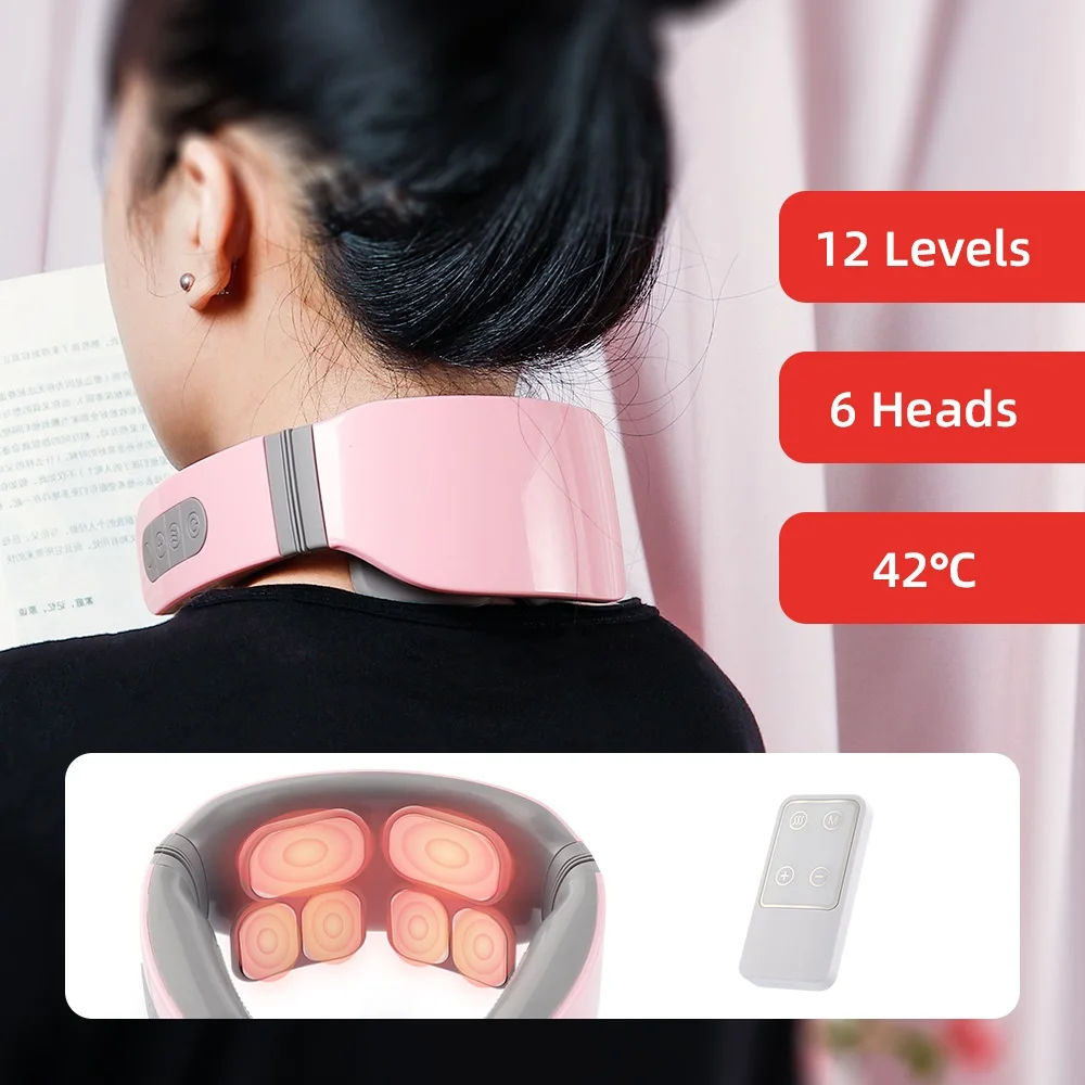 6-Zone Neck Massager 12 Levels TENS Electric Impulse 42℃ Heating Therapy Kneading Vertebra Relaxation Machine Relief Pain Health