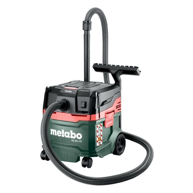 Metabo Aspiratore Universale AS 20 L PC (602083000) Aspiratore compatto e versatile per polveri di classe L con sistema di pulizia dei filtri integrato Aspiratore a umido/secco con omologazione commerciale Ideale per l'uso mobile grazie al peso ridotto e al design compatto Per l'aspirazione di utensili elettrici e la pulizia di cantieri, officine, ecc. PressClean: pulizia manuale del filtro tramite un forte flusso d'aria quando si preme l'interruttore dell'aspirapolvere durante le pause di lavoro Protezione dell'utente: certificata secondo lo standard UE per la classe di polvere L Arresto dell'aspirazione durante l'aspirapolvere a umido quando viene raggiunto il livello massimo di riempimento Pratico scomparto per gli accessori con coperchio a cerniera per le parti più piccole Accessori per aspirapolvere in dotazione con sistema rapido per una sostituzione veloce durante l'uso Valori Tecnici Portata d'aria max.4200 l/min Pressione negativa225 hPa (mbar) Area filtro3500 cm² Potenza in