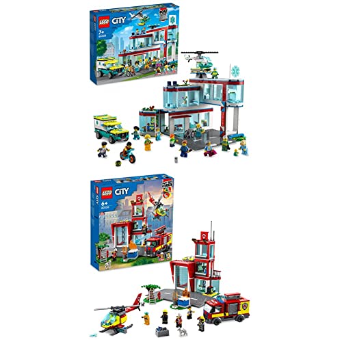 LEGO 60330 City Ospedale, Set con ambulanza Giocattolo ed Elicottero di Soccorso & 60320 City Fire Caserma dei Pompieri, con Camion ed Elicottero Giocattolo e Garage