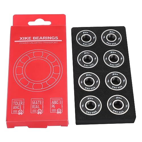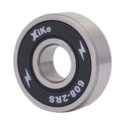 XiKe 608-2RS Cuscinetti skateboard 8x22x7 Doppia tenuta in gomma 608RS Acciaio cromato Cuscinetti a sfera per Rollerblade Scooter Ruote Skateboard Pattini in Linea (Nero, 8 Pezzi)