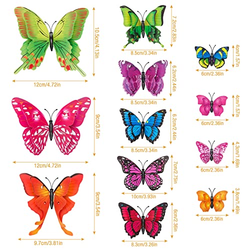 60Pcs Adesivi Murali Farfalla 3D con Magnete, Adesive Farfalle 3D Adesivi per Pareti, Farfalla Artificiale a Doppia Ali 3D, per Domestica, Bambini Camera Da Letto, Frigorifero, DIY, Multicolore