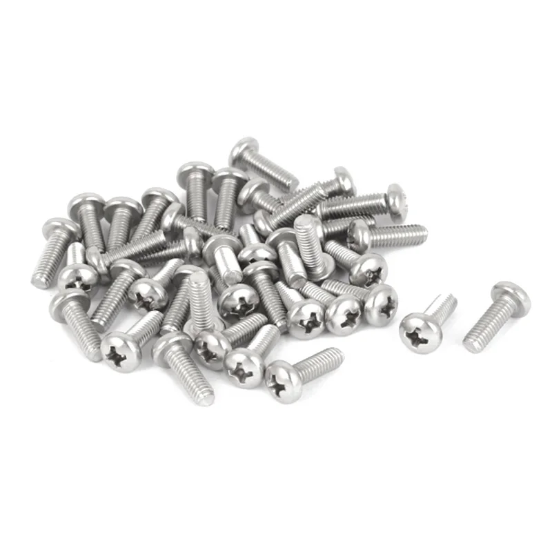60pcs M2 x 4mm 304 Stainless Steel Phillips Round Head Screws Bolt