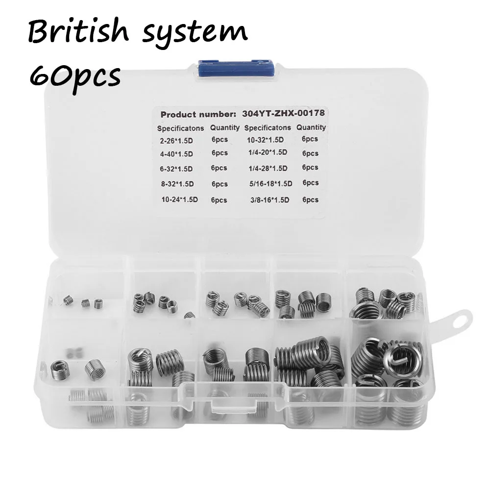 60pcs / 304 stainless steel wire inch screw set screw set thread steel wire tooth set classification repair tool