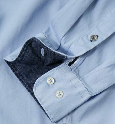 Camicia classica con bottoni dal tocco moderno. La camicia è realizzata in puro cotone con struttura Bedford.